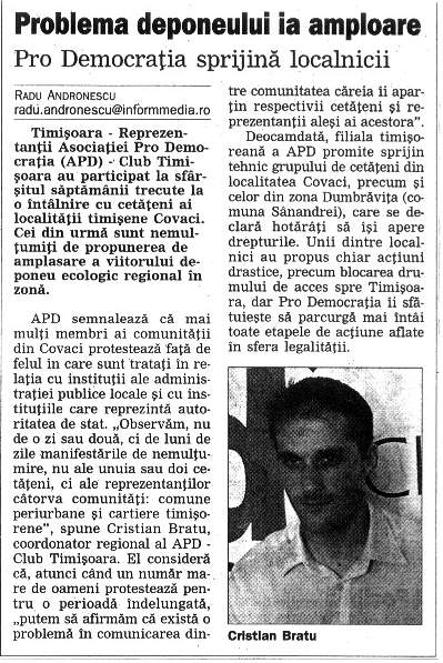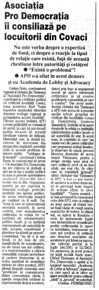 Articole aparute in urma intalnirii publice din data de 8 iunie 2003 - Covaci