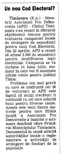Campania de promovare a Codului Electoral - evaluare intermediara