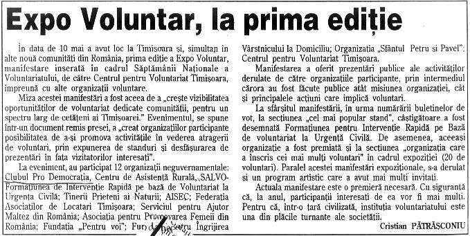 Saptamana nationala a voluntariatului si Expo-Voluntar (10 mai 2003)