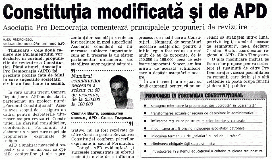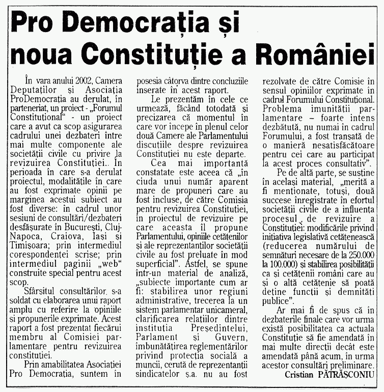 Revizuirea Constitutiei - pozitia Asociatiei Pro Democratia