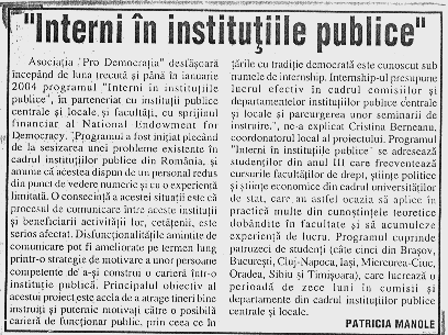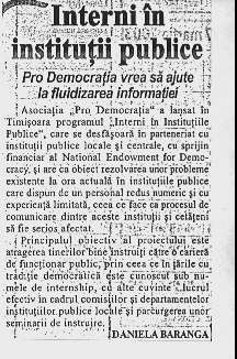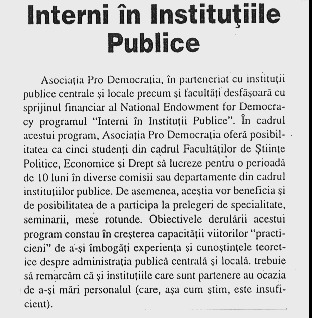 Interni in Institutii Publice - Pro Democratia vrea sa ajute la fluidizarea informatiei