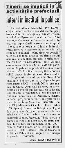 Interni in Institutiile Publice - Tinerii se implica in activitatea prefecturii