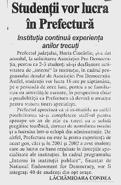 Studentii vor lucra in Prefectura - Institutia continua experienta anilor trecuti