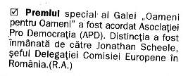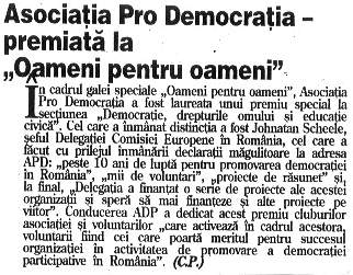 Asociatia Pro Democratia premiata la "Oameni pentru Oameni"